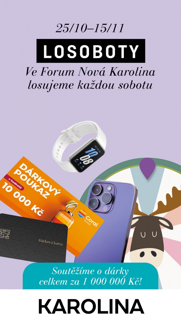 Podzim bude ve Forum Nová Karolina opravdu napínavý! Od 15. října do 15. listopadu 2025 probíhá soutěžní série LOSOBOTY, ve které můžete každý týden vyhrát hodnotné ceny v celkové hodnotě 1 000 000 Kč.
