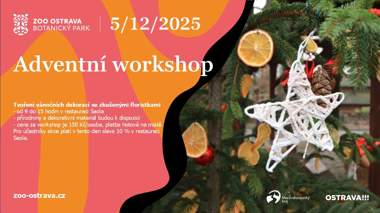 Tvoření vánočních dekorací se zkušenými floristkami - k dispozici bude množství přírodnin a dekorativních prvků. Pracuje se s nůžkami a tavnými pistolemi, proto dobře zvažte přítomnost nejmenších dětí. Akce probíhá od 9 do 15 hodin v restauraci Saola. Pro účastníky akce platí v tento den sleva 10 % v restauraci Saola.