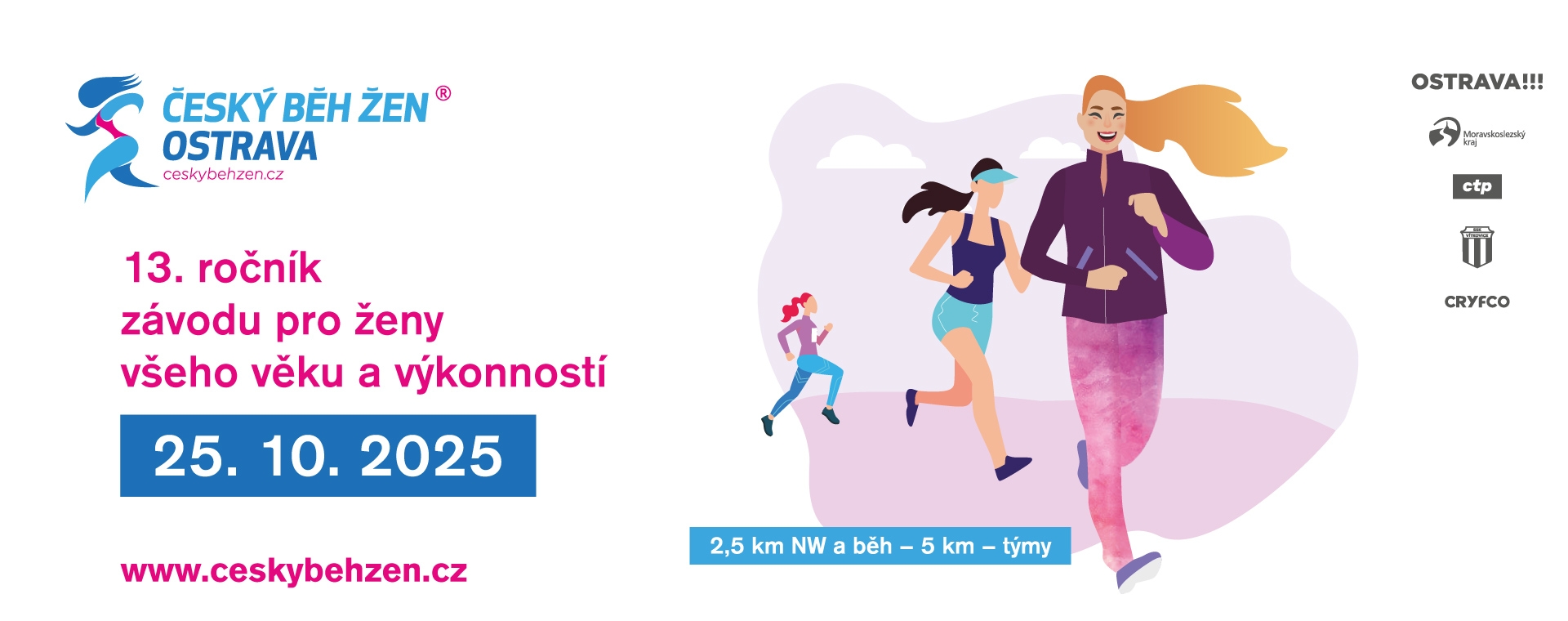 Český běh žen je městský silniční závod pro ženy a dívky všeho věku a výkonností. Běhá se na tratích třetího největšího města České republiky, jedinečného industriálního skvostu, města Ostravy. Start a cíl si dopřejeme na na dráze atletického stadionu ve Vítkovicích, kde můžete zažít profesionální podmínky a atmosféru velkého závodu.
