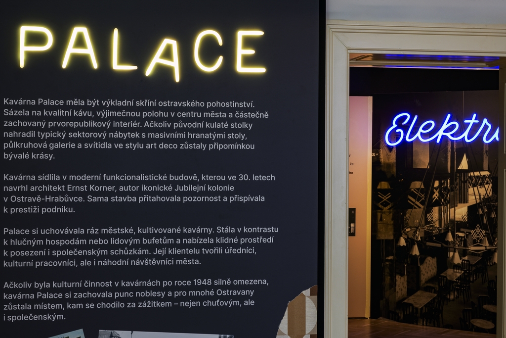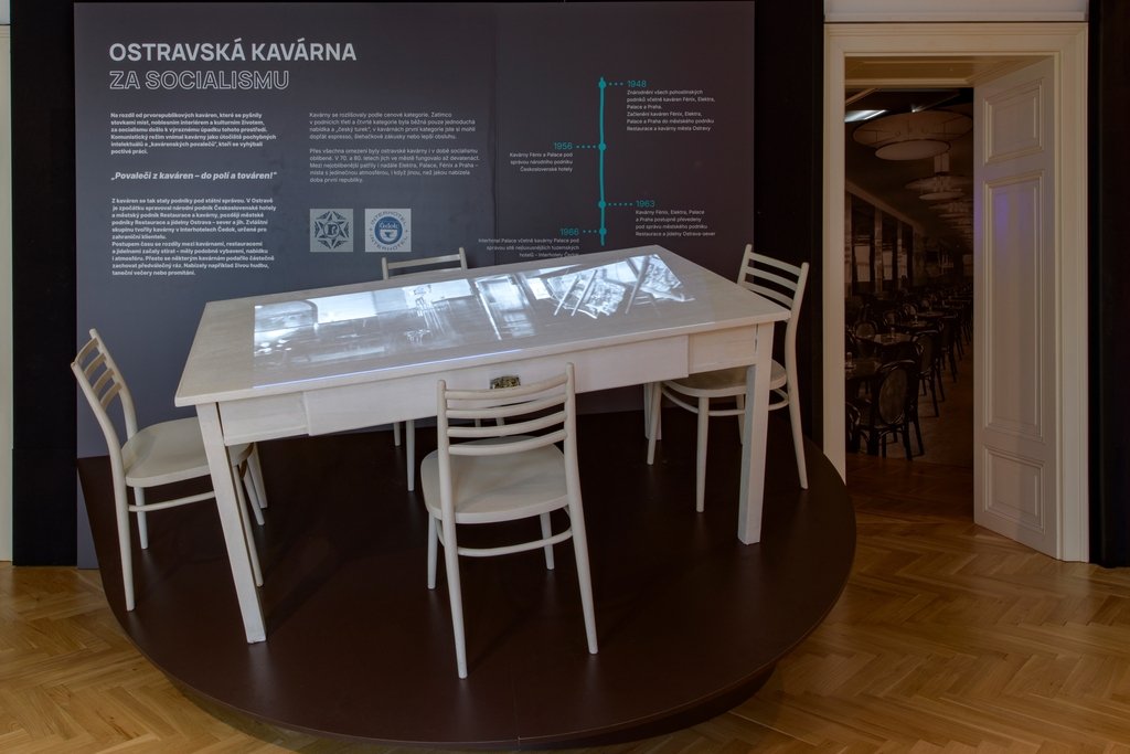 Výstava Ostravská kavárna prostřednictvím příběhů čtyř legendárních kaváren – Praha, Elektra, Fénix a Palace – sleduje, jak se vyvíjela kavárenská scéna v Ostravě od počátku 20. století, přes útlum a proměny druhé poloviny 20. století, až po současnost.