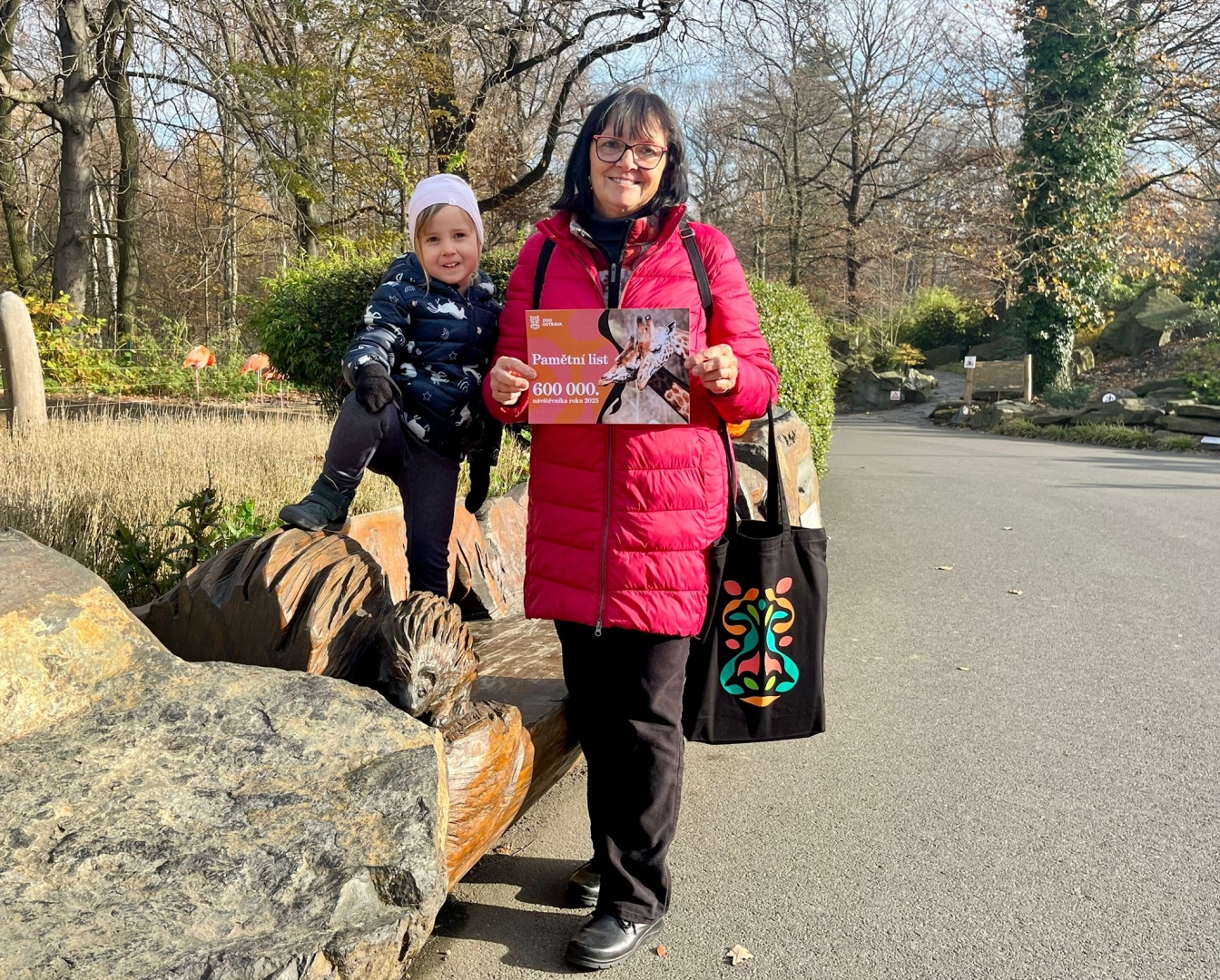 Jubilejním návštěvníkem letošního roku s pořadovým číslem 600 000 se stala paní Jana Němcová z Ostravy. Do zoo vyrazila se svou dcerou a vnučkou. S příbuznými navštěvují zoo pravidelně, přibližně jednou týdně. Úterní slunečné počasí je vylákalo k další návštěvě. Rodina díky častým návštěvám v průběhu celého roku dlouhodobě využívá permanentní vstupenky, nejraději mají mimosezónní procházky. Jubilejní návštěvnice obdržela pamětní list a tašku s upomínkovými předměty zoo. V rekordním roce 2024 přivítala zoo 600 000. návštěvníka o týden dříve.