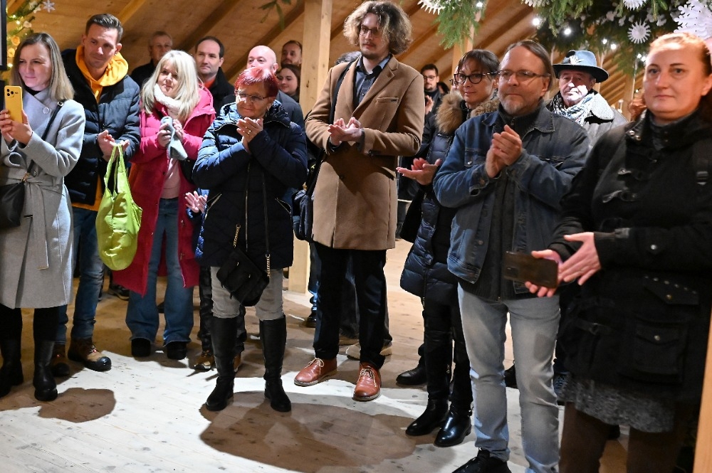Vernisáž zpěvem vánočních koled zpestřil pěvecký soubor ZUŠ E. Runda ve Slezské Ostravě.
